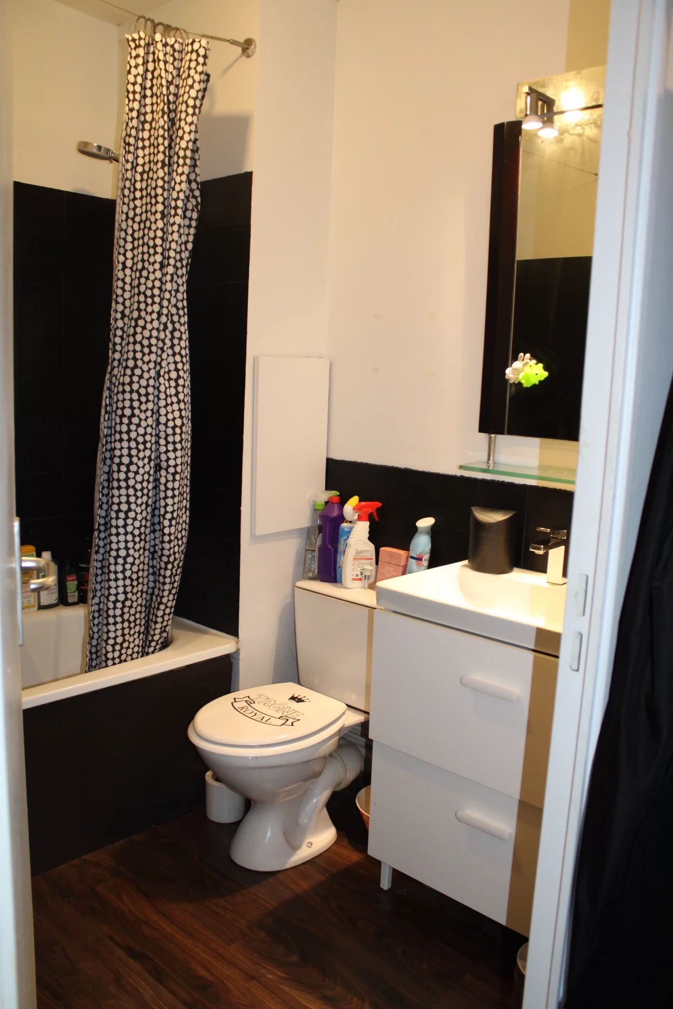 Il se compose d’un couloir avec un placard, une chambre spacieuse, une salle de bain avec WC et d’un salon séjour de 25m² donnant sur une cuisine.
